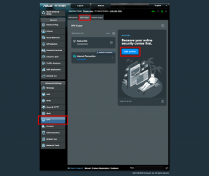 2. Navigate to “Advanced Settings”, then go to “VPN”, followed by the “VPN Fusion” tab, and click on “Add profile”.