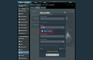 Once you have downloaded the files, go back to the control panel of your router and click Choose File in the “Import .ovpn file” section