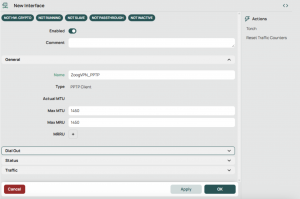 - Change the interface Name from ovpn-out1 to something descriptive like ZoogVPN for easier identification.
