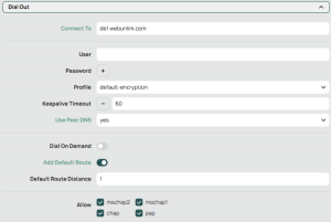 Leave the other settings at their default values unless instructed otherwise. Make sure the authentication methods mschap2 and mschap1 are allowed.