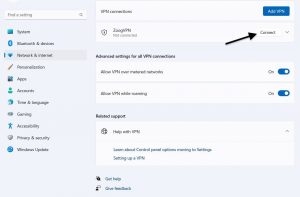 4. W ostatnim kroku wystarczy kliknąć przycisk “Connect”, aby włączyć połączenie VPN.