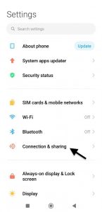 1. Przejdź do ustawień urządzenia i przejdź do sekcji “Connection & sharing”.