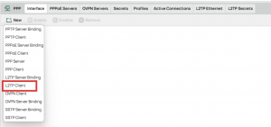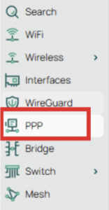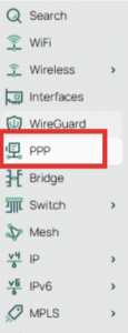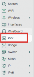 1. Перейдите в интерфейс Mikrotik и откройте вкладку PPP.
