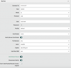 5. Поля Auth. и Cipher будут автоматически установлены в sha1 и blowfish128 или aes128 при импорте .ovpn файла