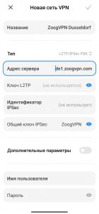 5. Введите любое имя, например “ZoogVPN Dusseldorf” в поле “Имя”, чтобы вы могли запомнить свое VPN-соединение.