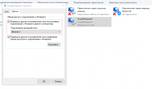 7. Во вкладке доступа в поставьте галочку на “Разрешить другим пользователям сети..” и в выпадающем списке выберите Ethernet2, с ним вы сможете поделиться интернет соединением с другим устройством через кабель.